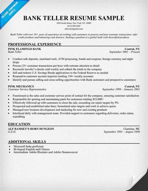 nice Learning to Write from a Concise Bank Teller Resume ... (Rose Roy)