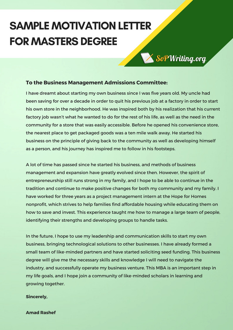 Sample Motivation Letter for Masters Degree | S...