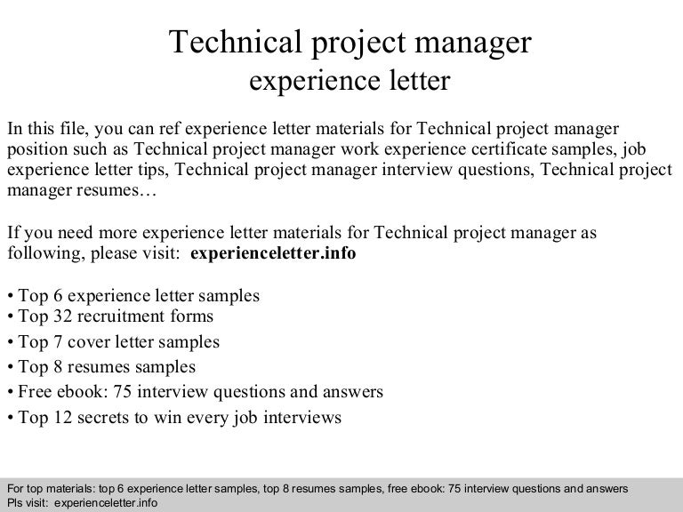 Technical project manager experience letter