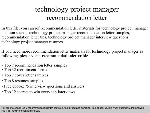 Technology project manager recommendation letter
