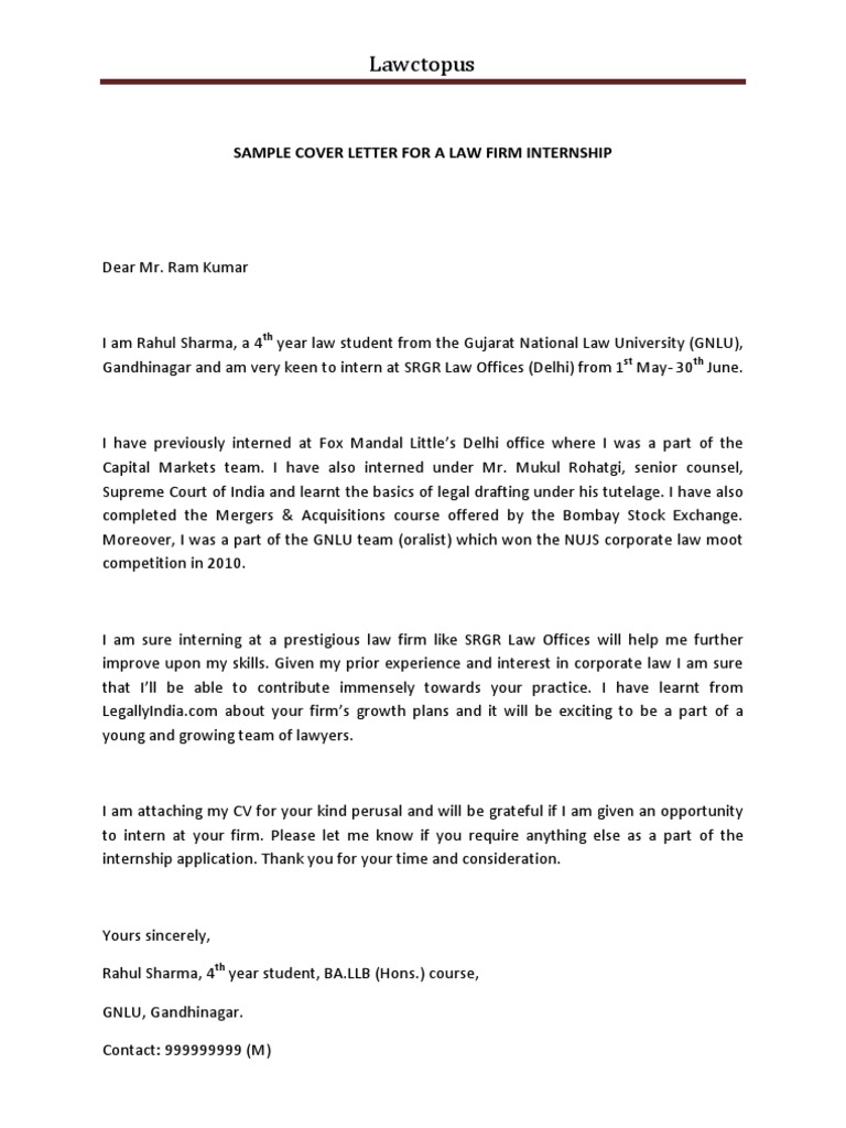 Writing A Legal Cover Letter. Writing a Cover Letter for a Law Internship Application. The hiring manager—we'll call him Chris.